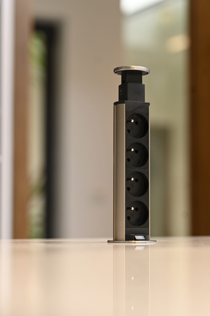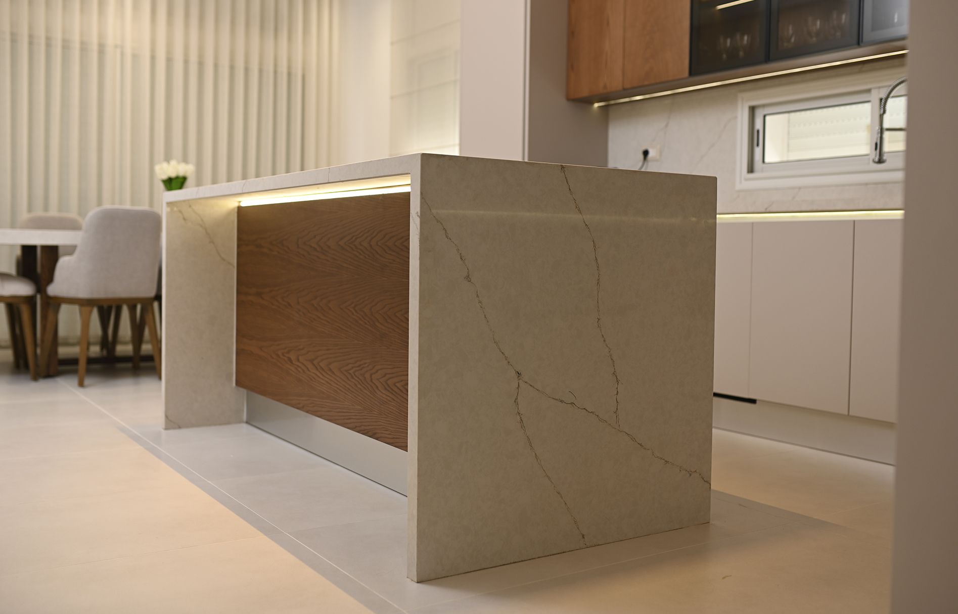 Îlot central en grès blanc, dont sa forme unique apporte une touche esthétique et une valeur ajoutée à votre cuisine. Ses lignes épurées et sa finition soignée en font un véritable atout design, alliant élégance et fonctionnalité.